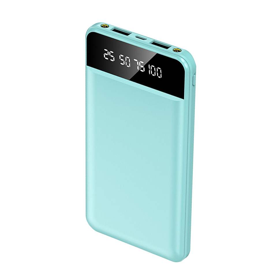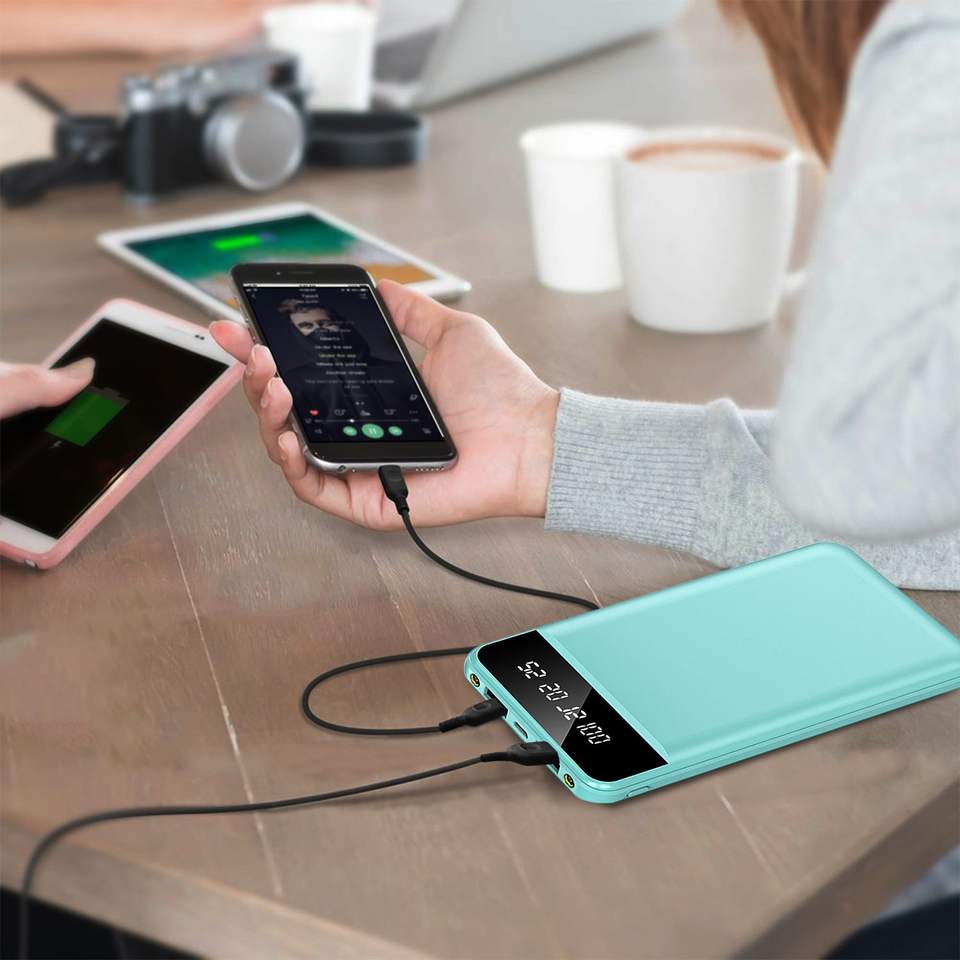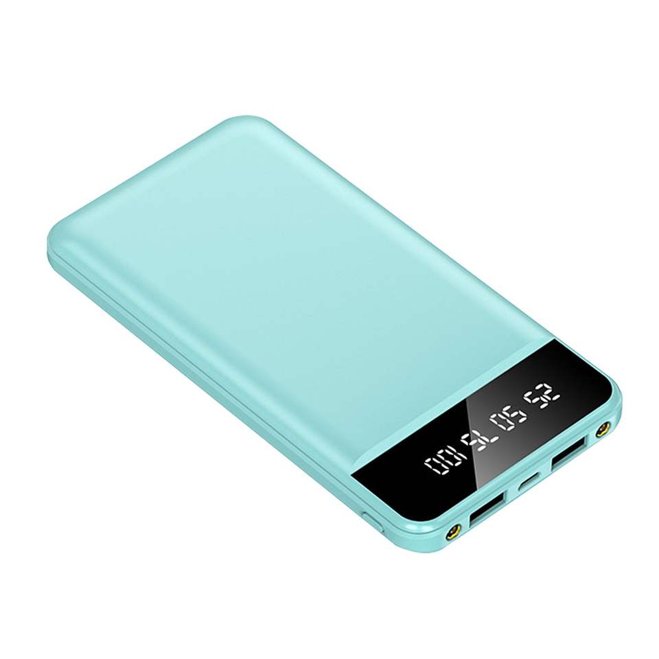 Batterie externe portable ultra-mince 10000 mAh avec 2 ports de sortie USB, lampe torche LED et câble de charge par Com
