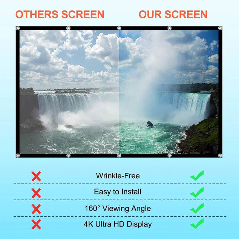 Portable 120 pouces 16:9 écran de projection extérieur et intérieur toile pliante rapide avec projecteur arrière en polyester durable