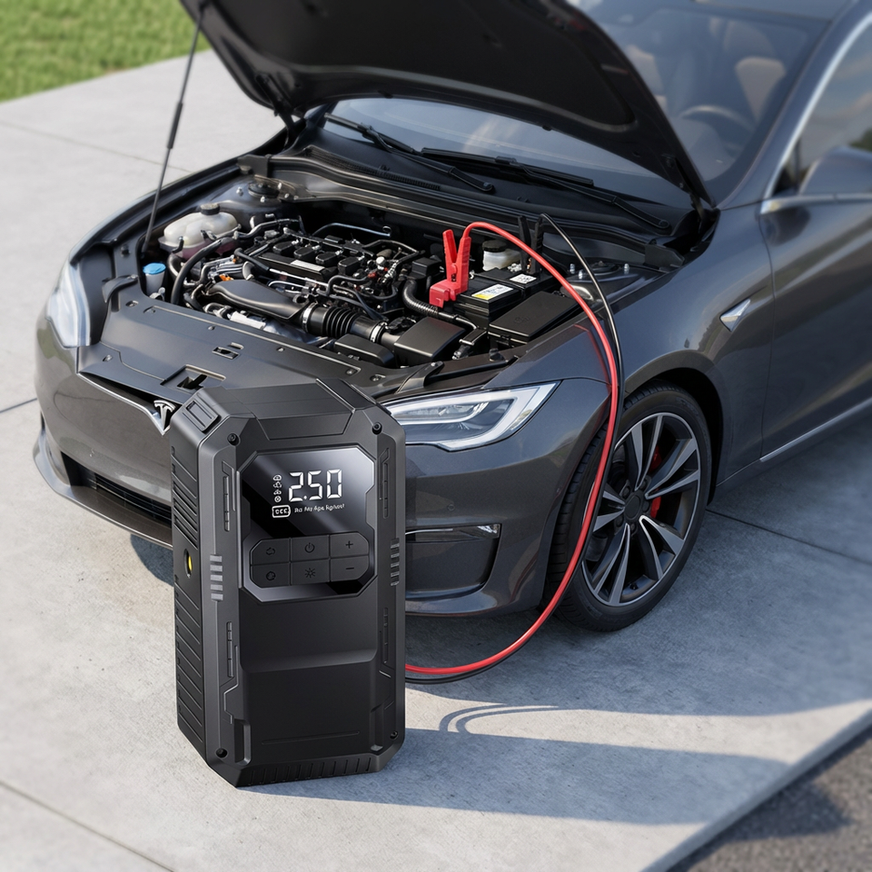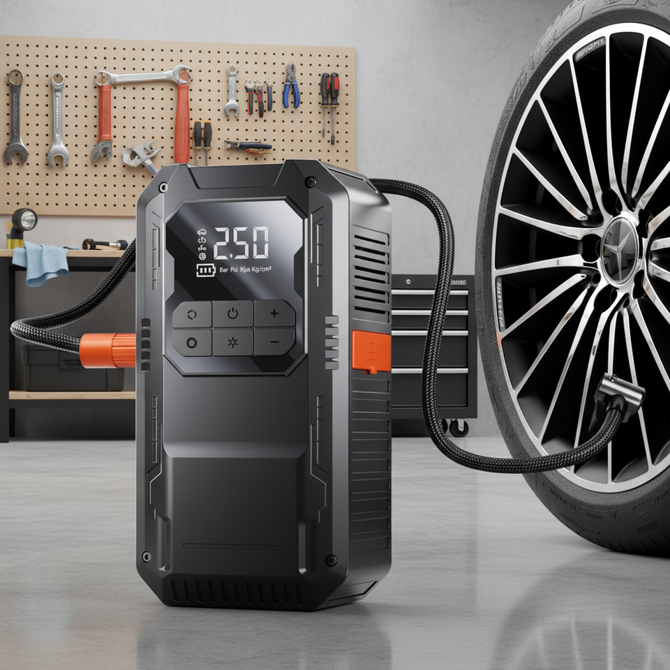 Portable 12V 6000 MAh Auto Batterie Booster Jump Starter Kit Écran Numérique LED Lumière Pompe À Air Compresseur pour Voitures/Motos