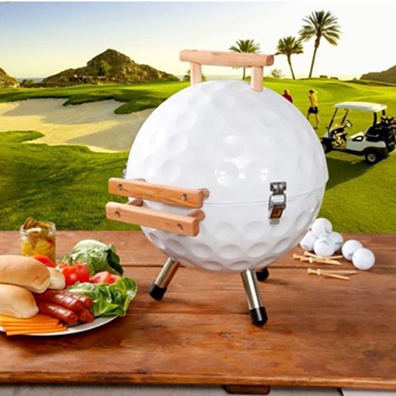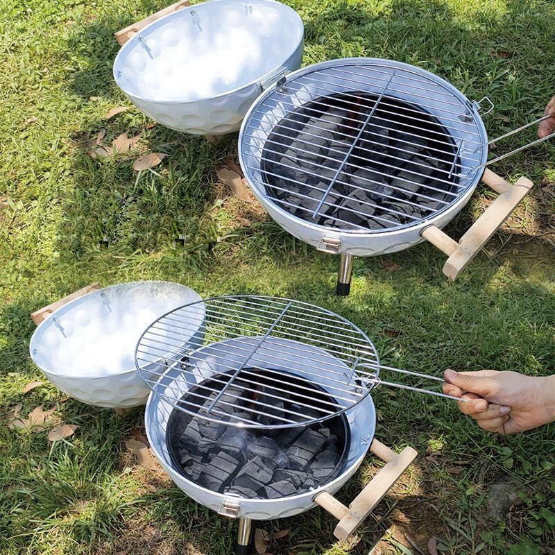 Portable 14 Inch Mini Charcoal Grill Football Shape Round Outdoor Kebab Barbecue Stove Steel Iron