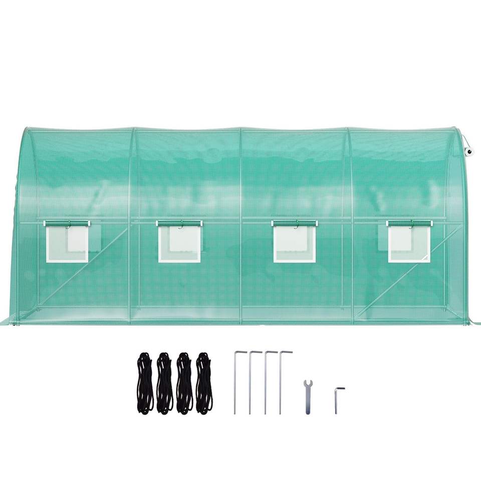 Serre tunnel portable 15 x 7 x 7 pieds avec arceaux en acier galvanisé, 1 poutre supérieure et poteaux diagonaux, pour jardinage et espaces de culture