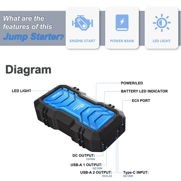 Lumière de secours, Indicateur d'alimentation, Moniteur de pression des pneus, Gonflage rapidefonction