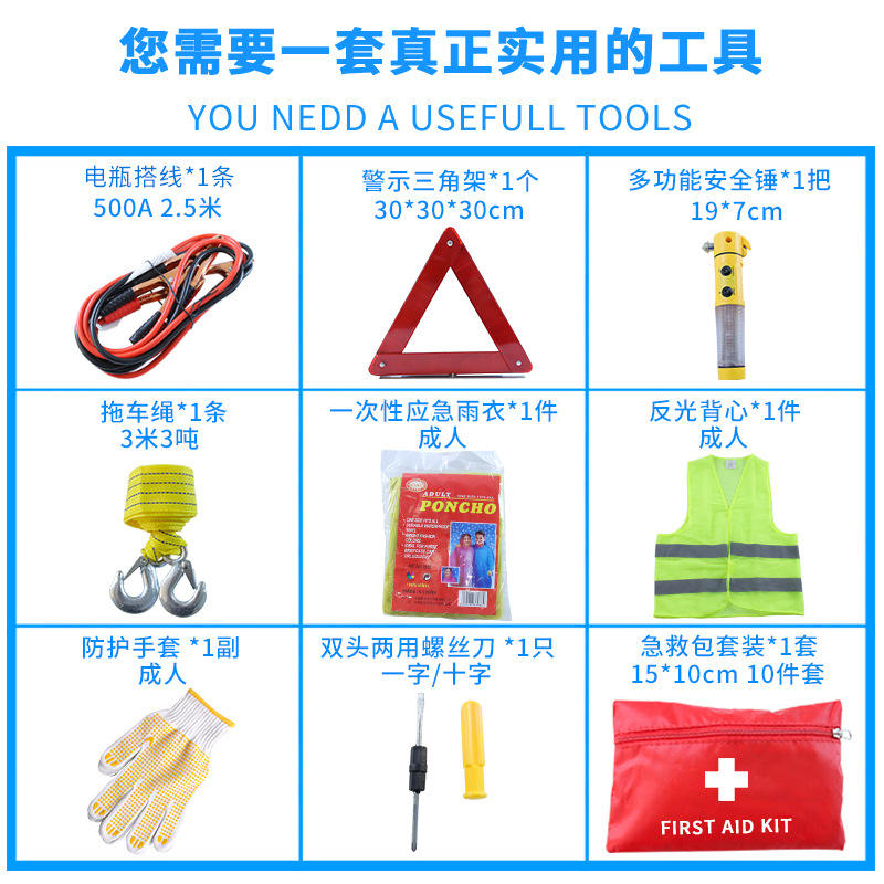 combinaison:Kit d'outils d'urgence pour voiture de 19 pièces