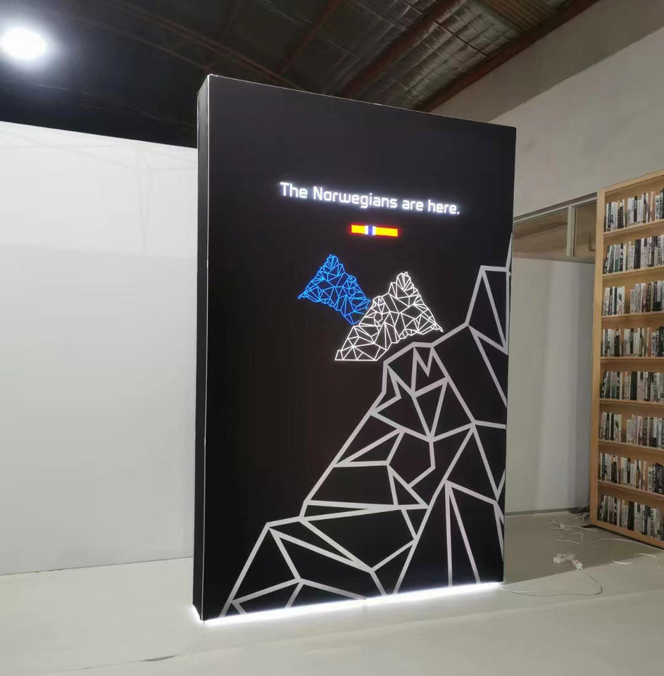 Îlot d'exposition en bois personnalisable en couleur et en logo, magasin de détail, salon professionnel, table d'exposition debout, unité d'exposition, présentoir d'îlot de mode