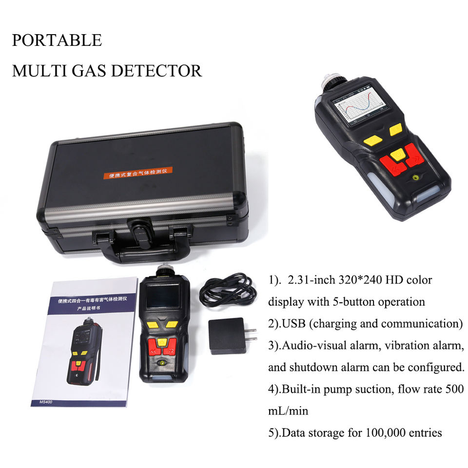 Détecteur de gaz portable, Détecteur de Multi-Gaz, 4 dans 1 détecteur de gaz, Détecteur de monoxyde de carbone, Détecteur de COV