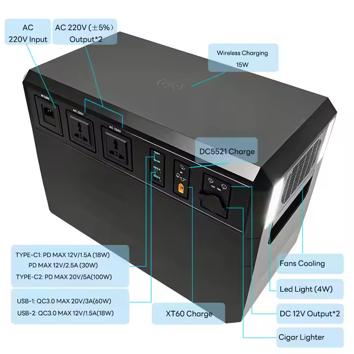 Recharge sans fil, Télécommande, Type C, Lampe de poche, Démarreur de saut, RV Port, Allumeur de cigare