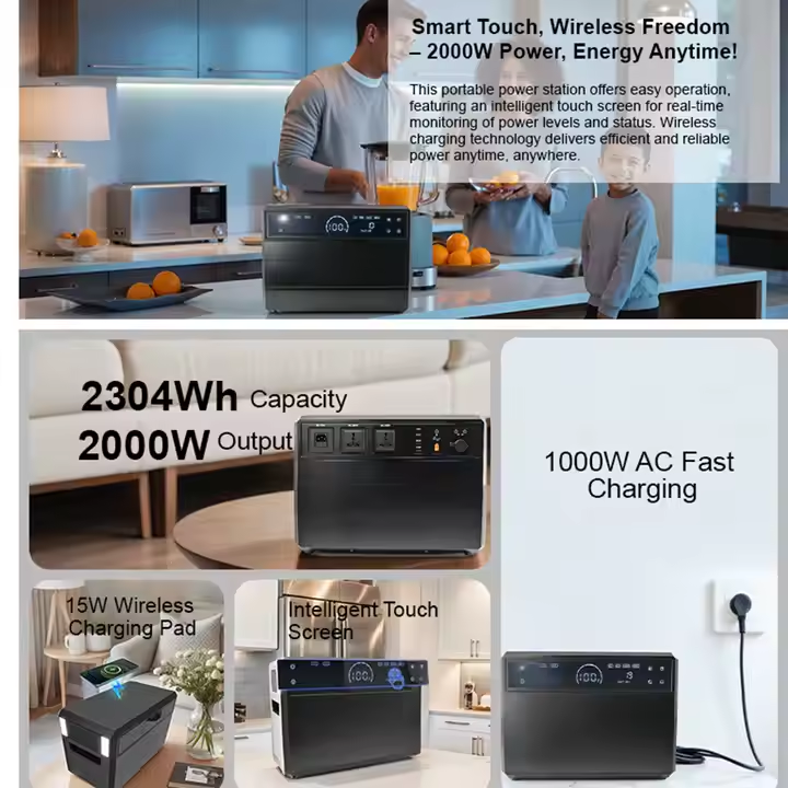Station d'alimentation solaire portable 2000W/2kWh avec contrôleur MPPT, sortie AC à onde sinusoïdale pure et lampe de poche, source d'alimentation pour voiture