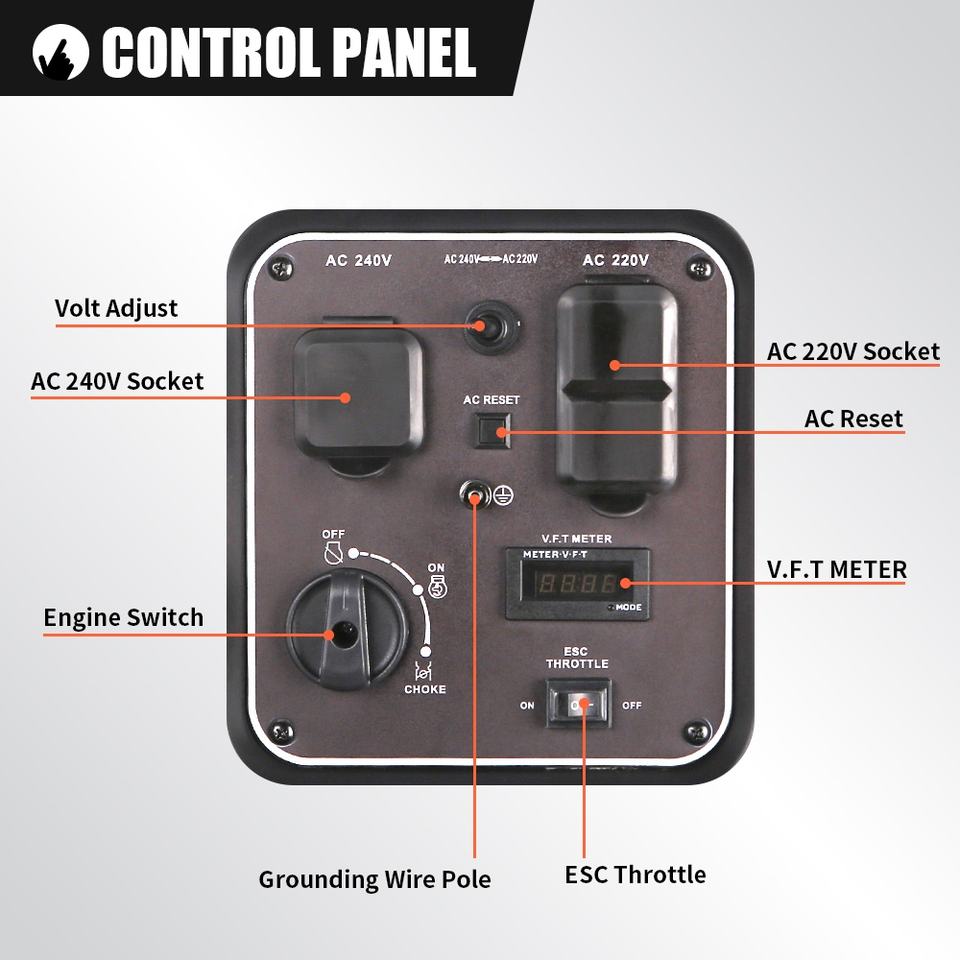 Générateur d'électricité portable à essence 230/120&240V 2/2,2 kW silencieux à onduleur pour maison, monocylindre 4 temps à refroidissement par air forcé