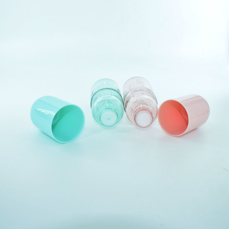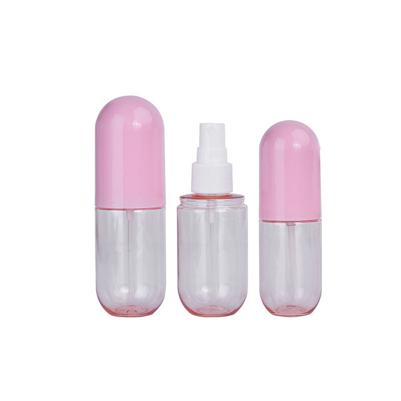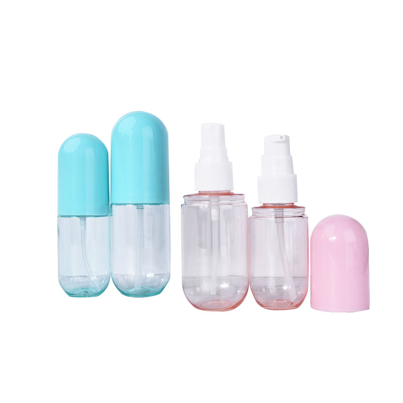 Flacon pulvérisateur portable de 2 oz en PET recyclable, coloré, en forme de pilule, pour gel désinfectant pour les mains à l'alcool