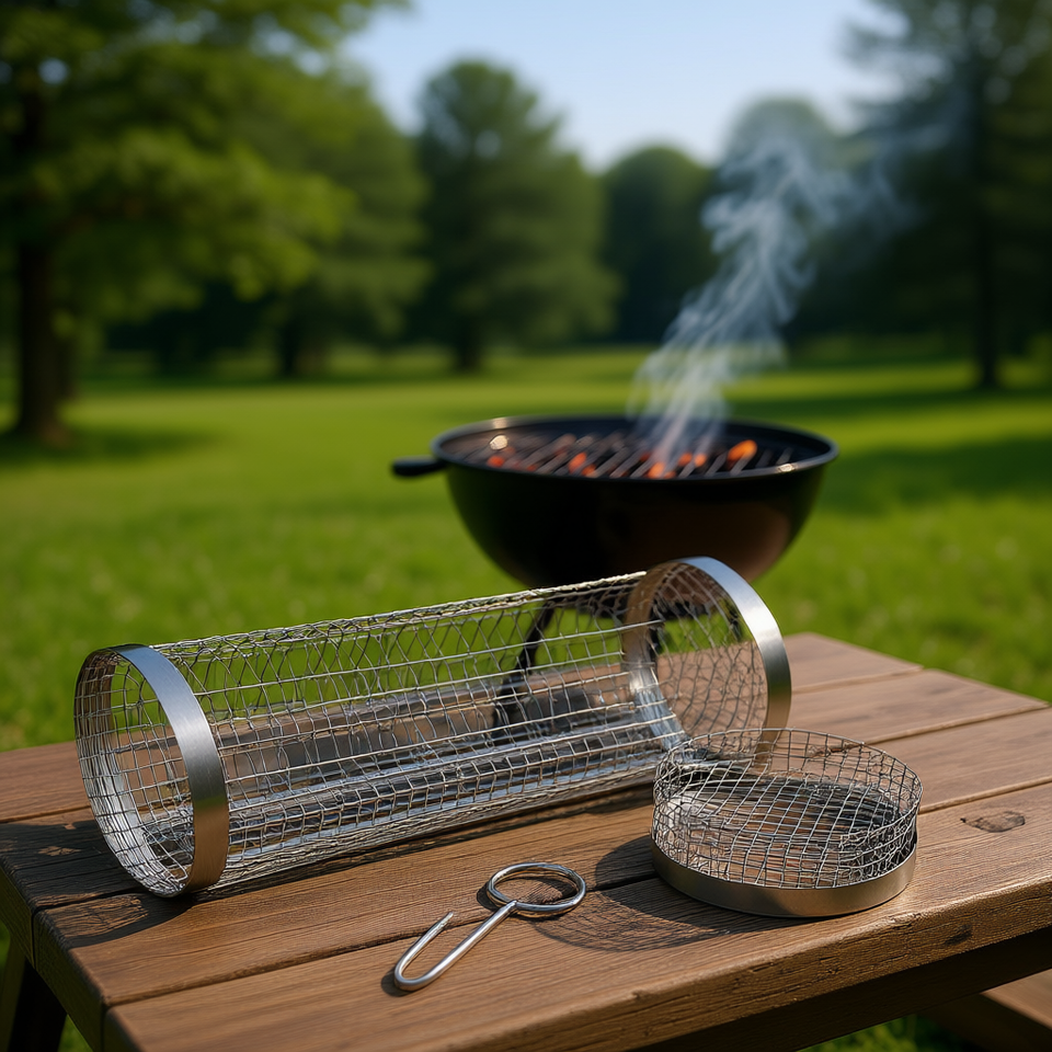 Stainless Steel Grill Mesh 3.42x11.61 Inch 2Pcs BBQ Rolling Basket with Removable Cover for Outdoor Camping
