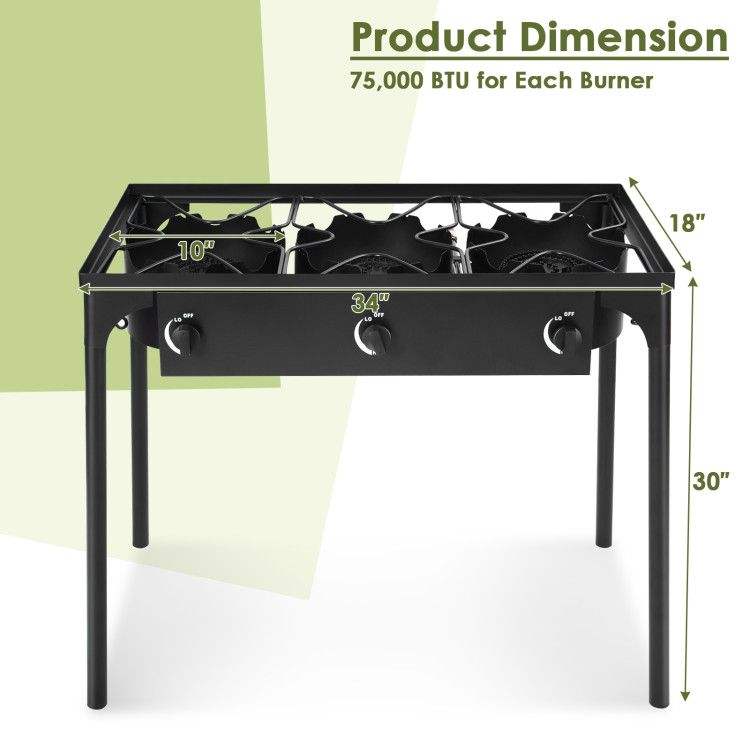Cuisinière à gaz propane portable à 3 brûleurs, 225 000 BTU, pour le camping, les aventures en plein air et les voyages