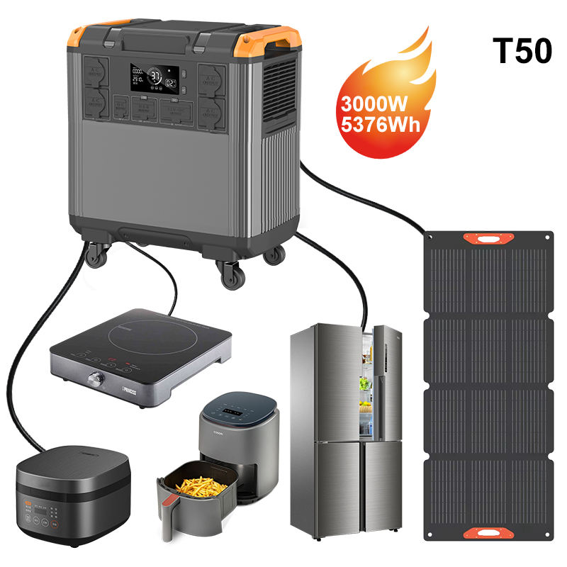 Générateur solaire portable 3000W à onde sinusoïdale pure 5376Wh LiFePO4 avec MPPT pour la maison et l'extérieur – Station d'alimentation d'urgence