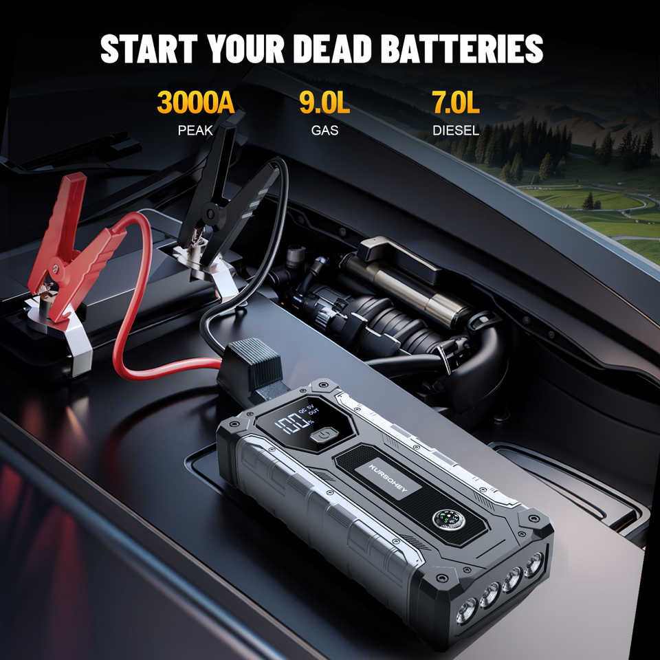 With LED Light, Digital screen, Jump Start the Car, Mobile ChargeFunction