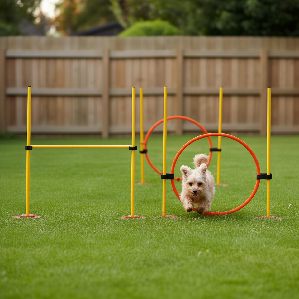 Ensemble d'équipement d'agility portable pour chien avec poteaux de tressage et anneau de saut pour l'entraînement des animaux de compagnie