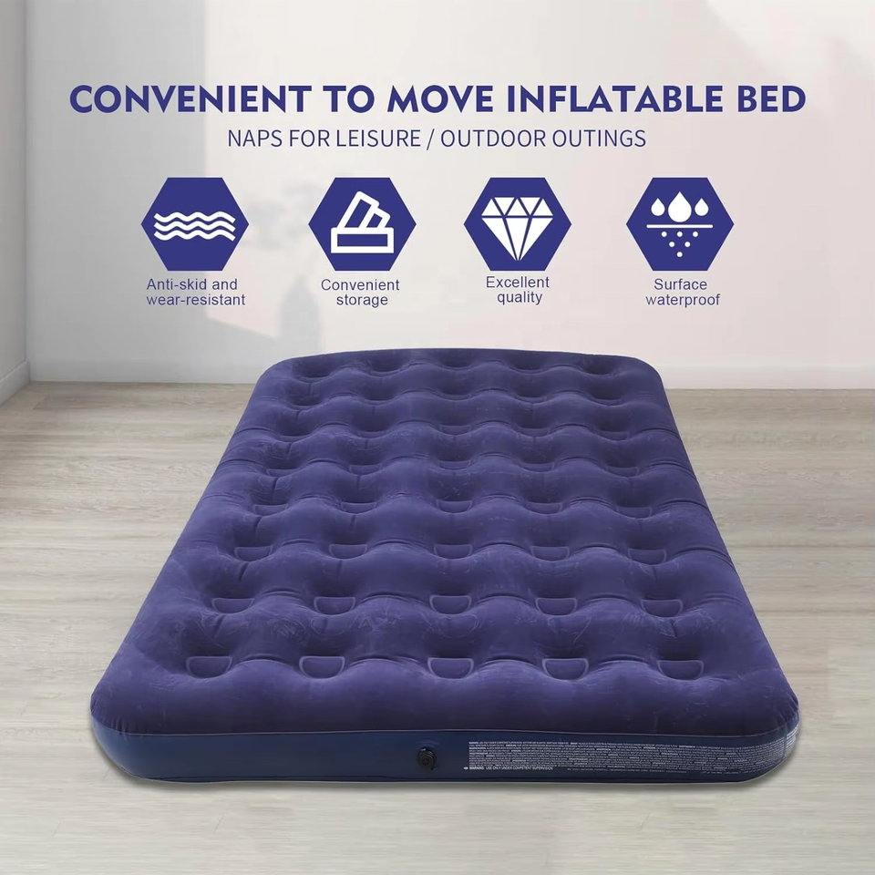 Matelas Gonflable Portable Double Taille avec 40 Bobines d'Air et Valve, Durable et Étanche, Idéal pour le Camping et les Invités