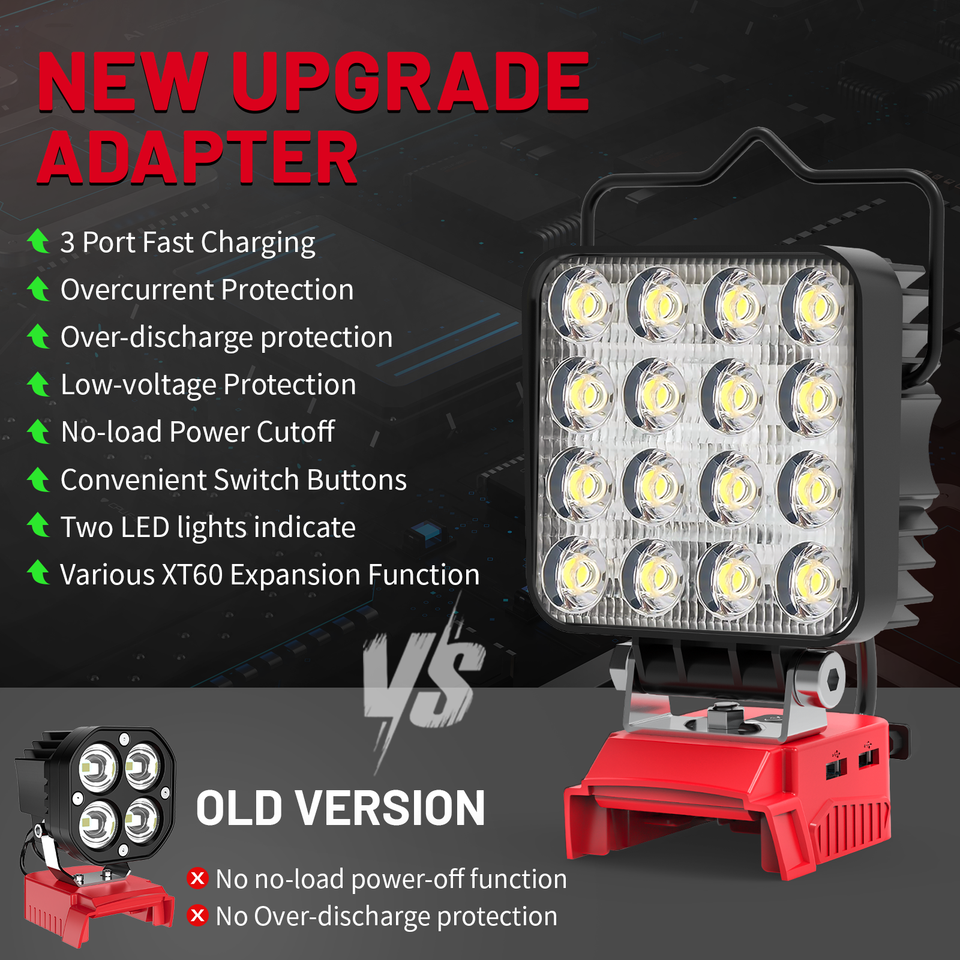 Lampe de travail LED portable 48W 18V compatible avec la batterie Milwaukee 18V avec port de charge USB et Type-C, lampe LED rechargeable