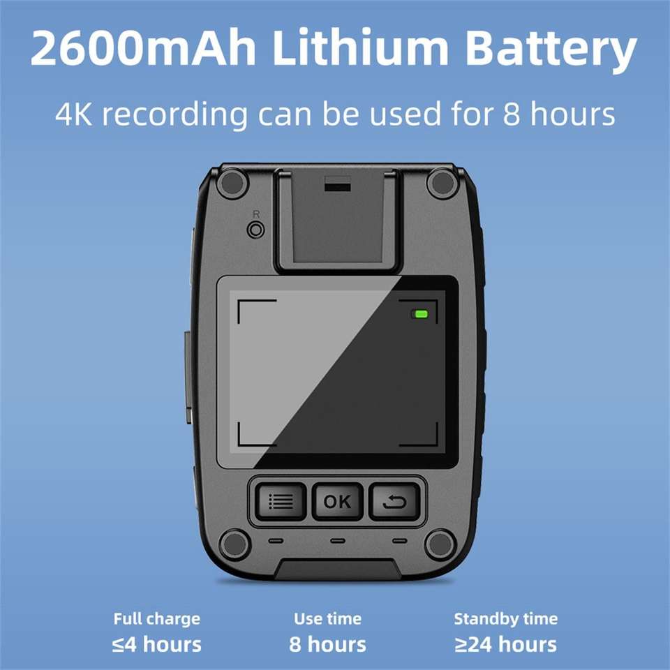 Caméra portable 4K 50MP QHD à porter sur le corps avec écran TFT 2.0 et vision nocturne infrarouge pour agents de sécurité