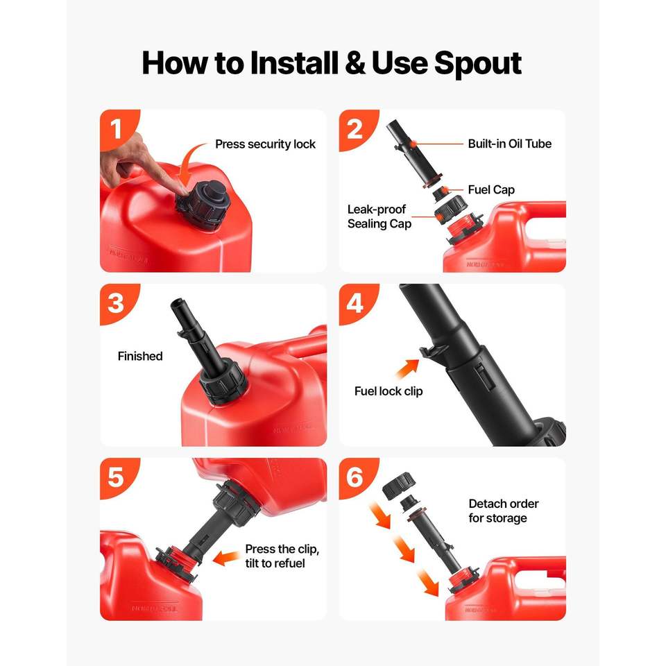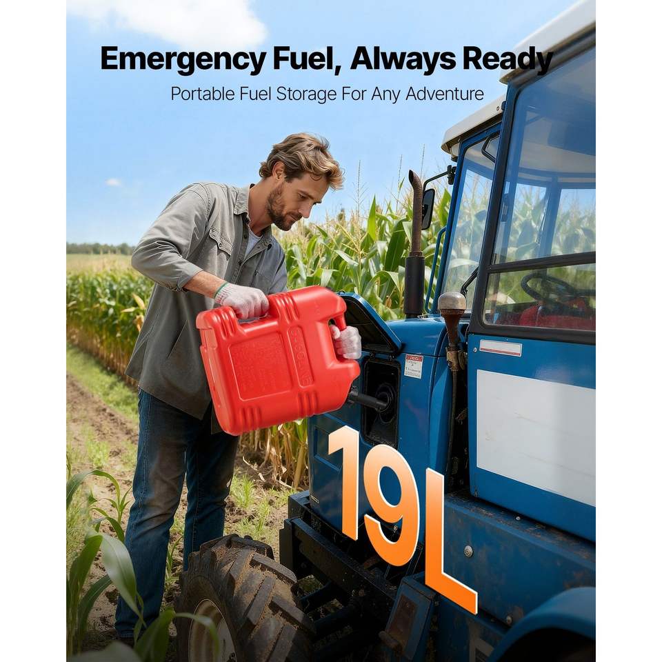 Réservoir de carburant portable de 5 gallons avec échelle graduée, bec verseur sécurisé anti-fuite, débit maximal de 15 L/min, conception plate et fluide