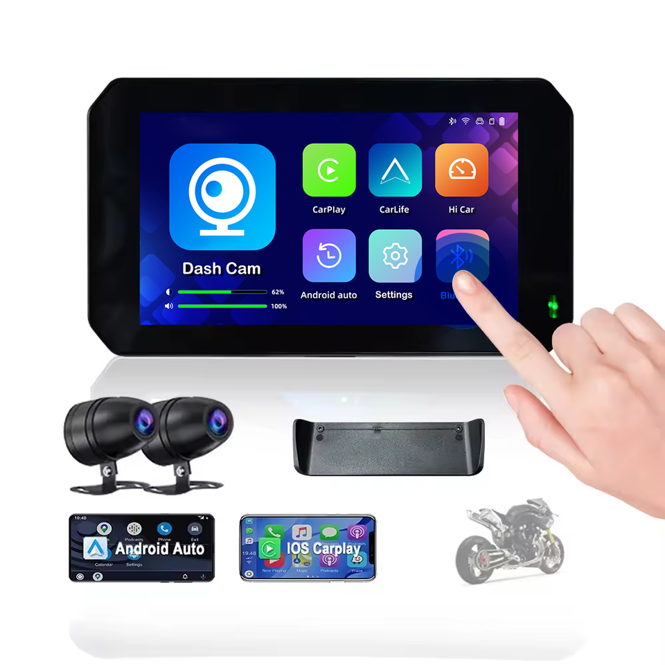 Écran d'affichage GPS de navigation pour moto portable 5 pouces IPX7 étanche, Carplay, écran pour moto, moniteur, double caméra, enregistreur de conduite