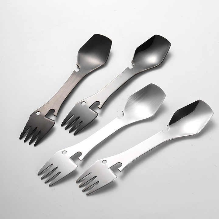 Portable 5 In1 En Acier Inoxydable Spork Cuillère Fourchette Couteau Bouteille Ouvre-boîte