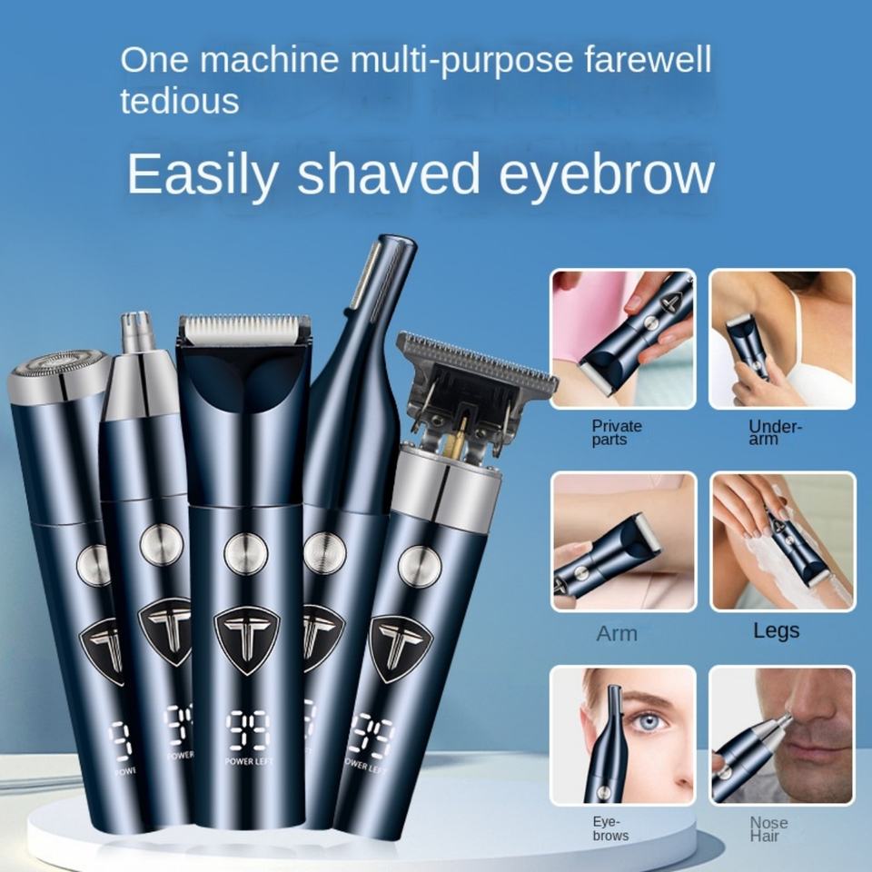 Tondeuse à Cheveux Électrique Portable 5-en-1 USB avec Affichage Numérique, Tondeuse Multifonctionnelle de Voyage pour le Nez en Acier Inoxydable
