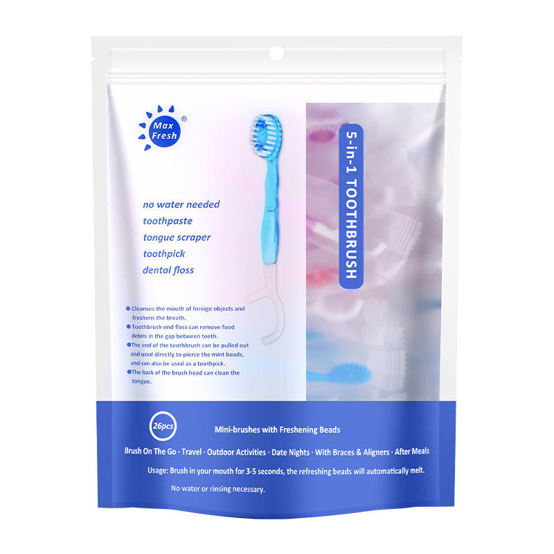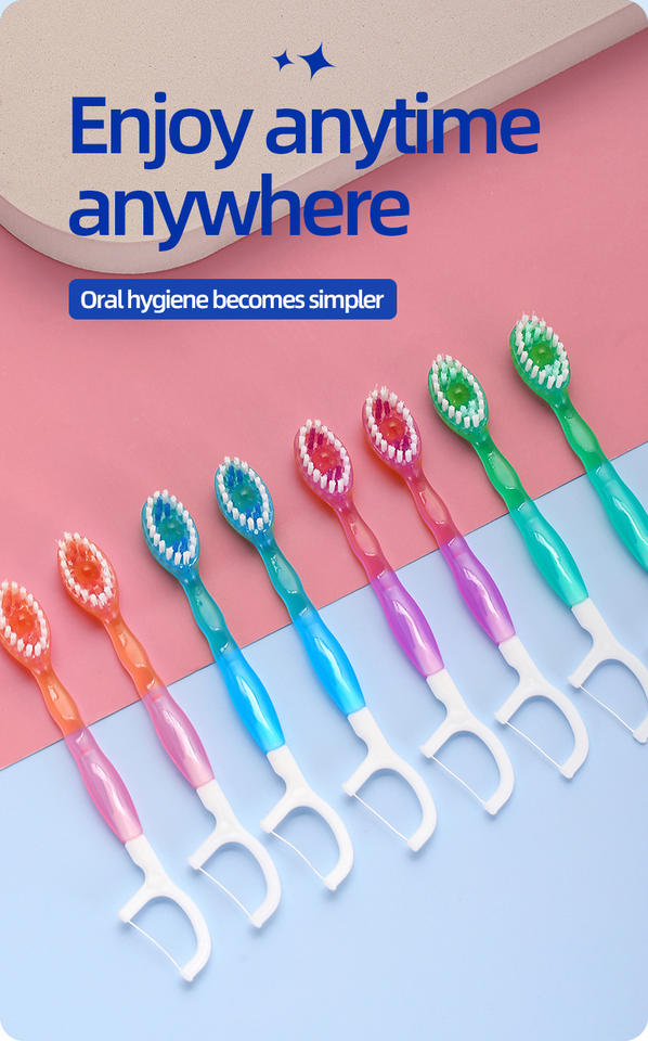 Portable 5-en-1 Mini jetable voyage brosse à dents ensemble éclatement perle poils souples cure-dents fil dentaire en vrac en gros plastique