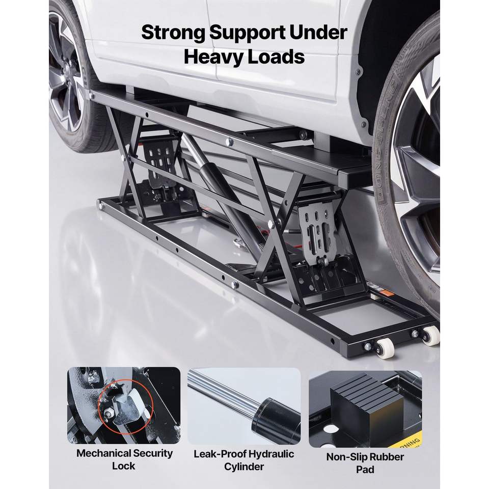 Lève-voiture portable 5000 lb avec hauteur maximale de levage rapide de 25,6 po, robuste, 4 patins en caoutchouc, pompe pneumatique, roues de 4 po, levage rapide