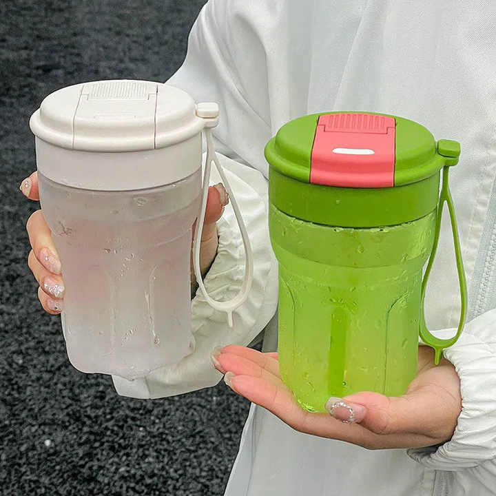 Tasse à café en plastique portable 500ml pour adulte avec paille pour le bureau ou les sports d'été Conception simple pour les couples Idée cadeau