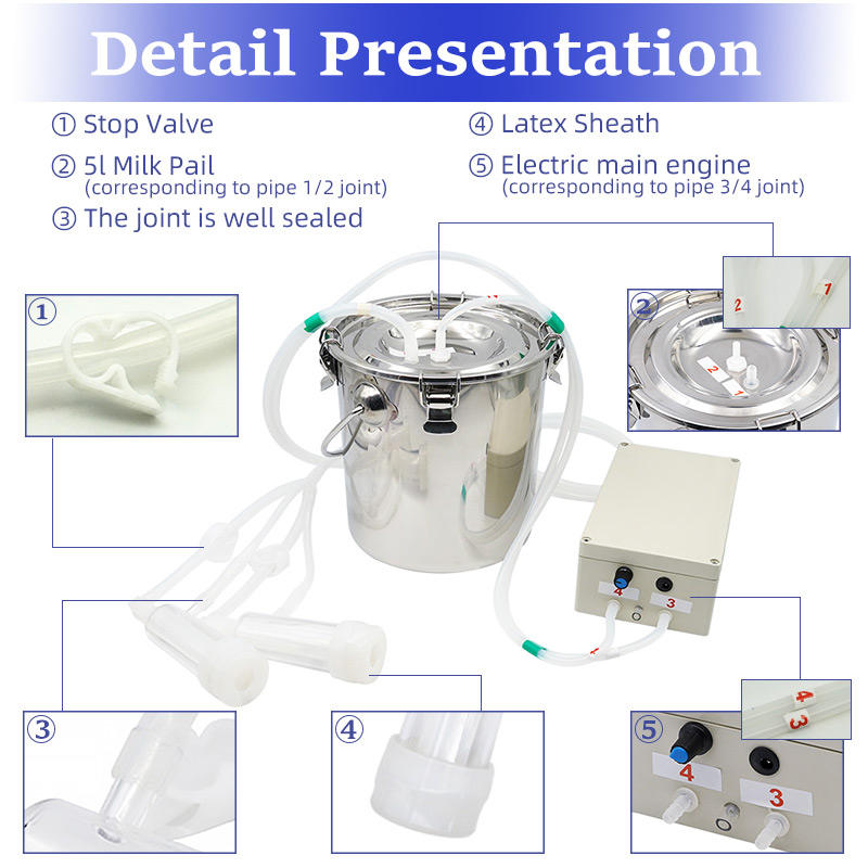 Machine à traire de volaille rechargeable portative de 5L pour la machine à traire automatique de chèvre de mouton d'acier inoxydable de vaches
