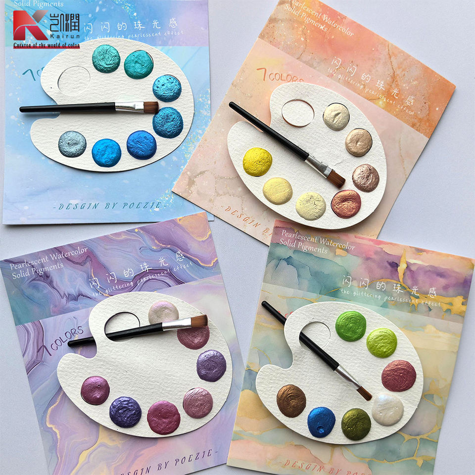 Portable 7 couleurs Mini solide nacré aquarelle Gouache peinture pinceau personnalisable carte de peinture brillante pour la peinture sur toile extérieure
