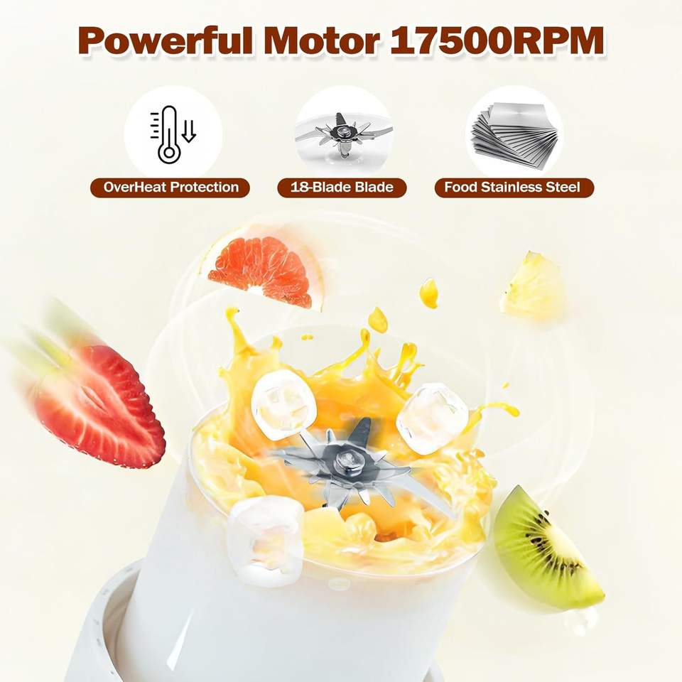 Blender portable sans fil 700 ml, mini, rechargeable par USB, avec 18 lames pour des smoothies et des milkshakes puissants