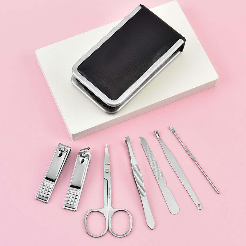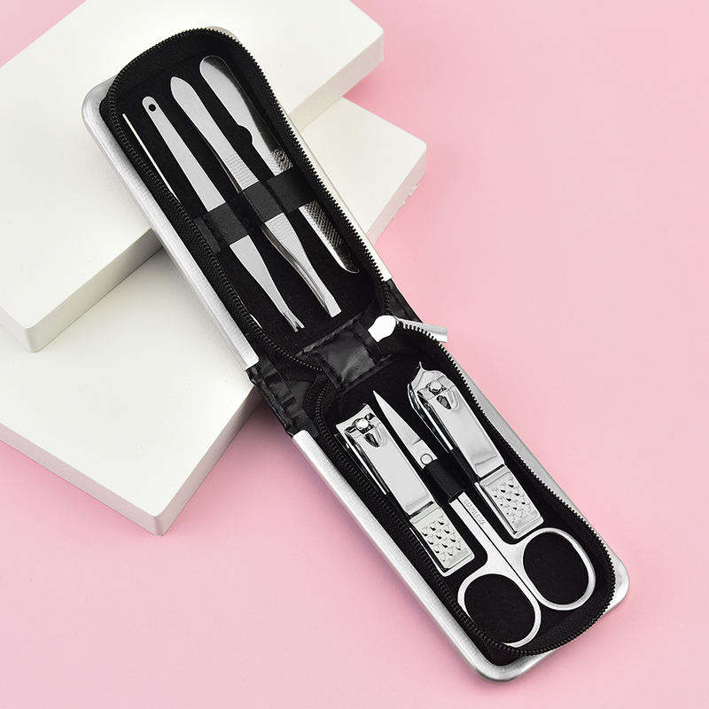 Portable 7 pièces manucure pédicure ensemble fermeture éclair sac en cuir PU coupe-ongles en acier inoxydable soins des pieds des nourrissons toilettage cadeau ANAAIF