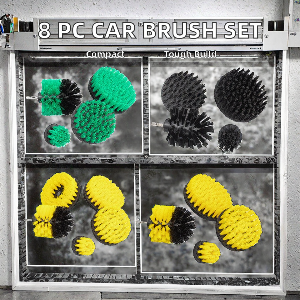 Ensemble de brosses de nettoyage pour voiture portable de 8 pièces, brosses de nettoyage automatiques en plastique pour perceuse