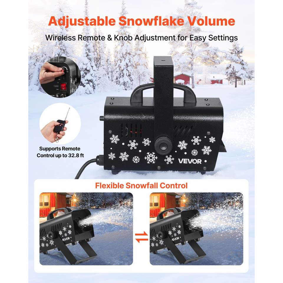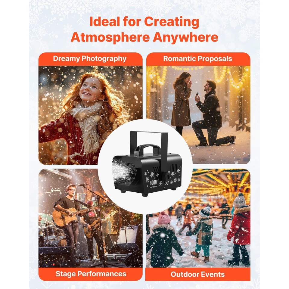 Portable 800W Handheld/Hanging Snow Machine Wireless Remote 1L Tank Handle for Outdoor Party Decorations Snowmaking Set