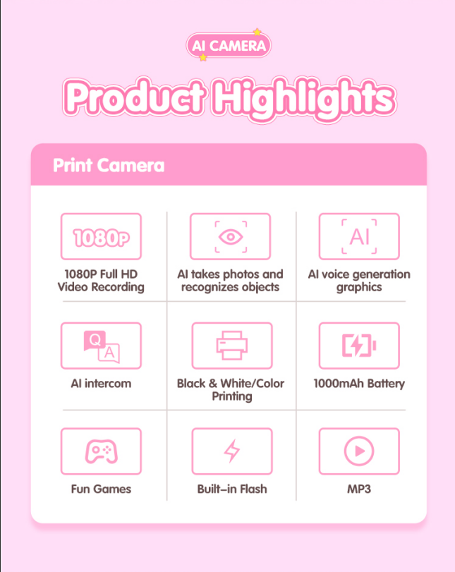 Nom du produit:Caméra imprimante vocale IA portable