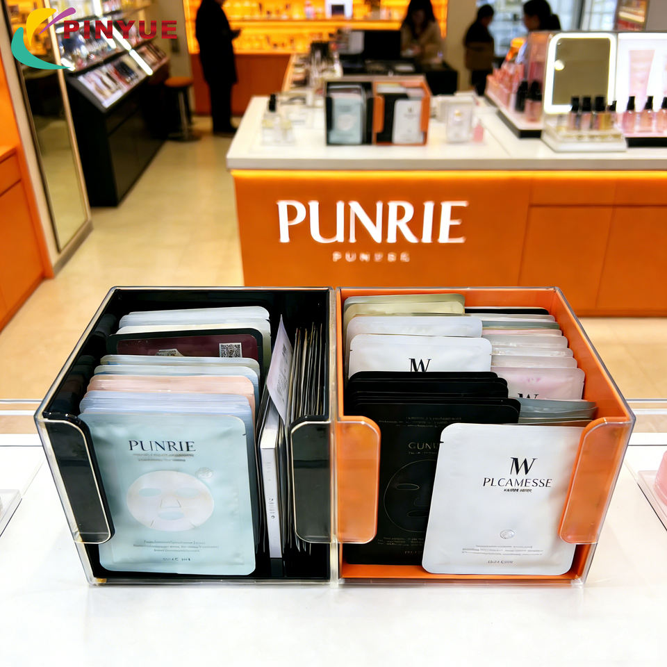 Boîte de présentation de masques faciaux en acrylique portable pour magasin de détail, comptoir personnalisé, boutique de cosmétiques
