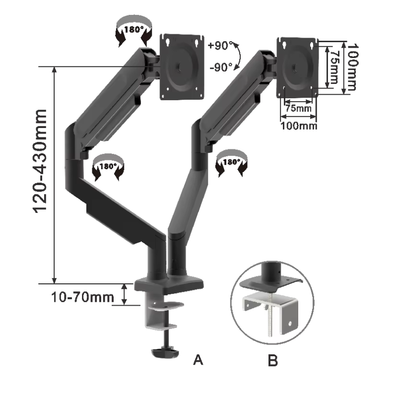Support de bureau réglable à double bras pour écran d'ordinateur portable, ergonomique, pour jeux vidéo