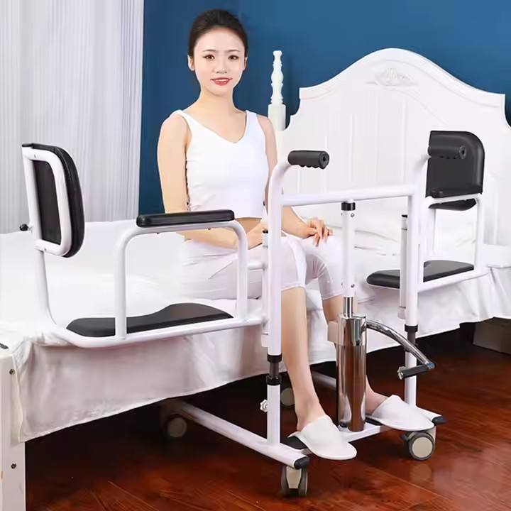 Chaise de transfert patiente de ménage réglable portative chaise de transfert de fauteuil roulant de soins de santé de chariot