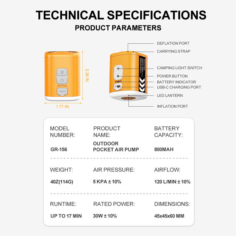 Pompe à air portable pour articles gonflables avec batterie et lampe de camping, mini équipement de camping électrique de poche pour matelas pneumatique