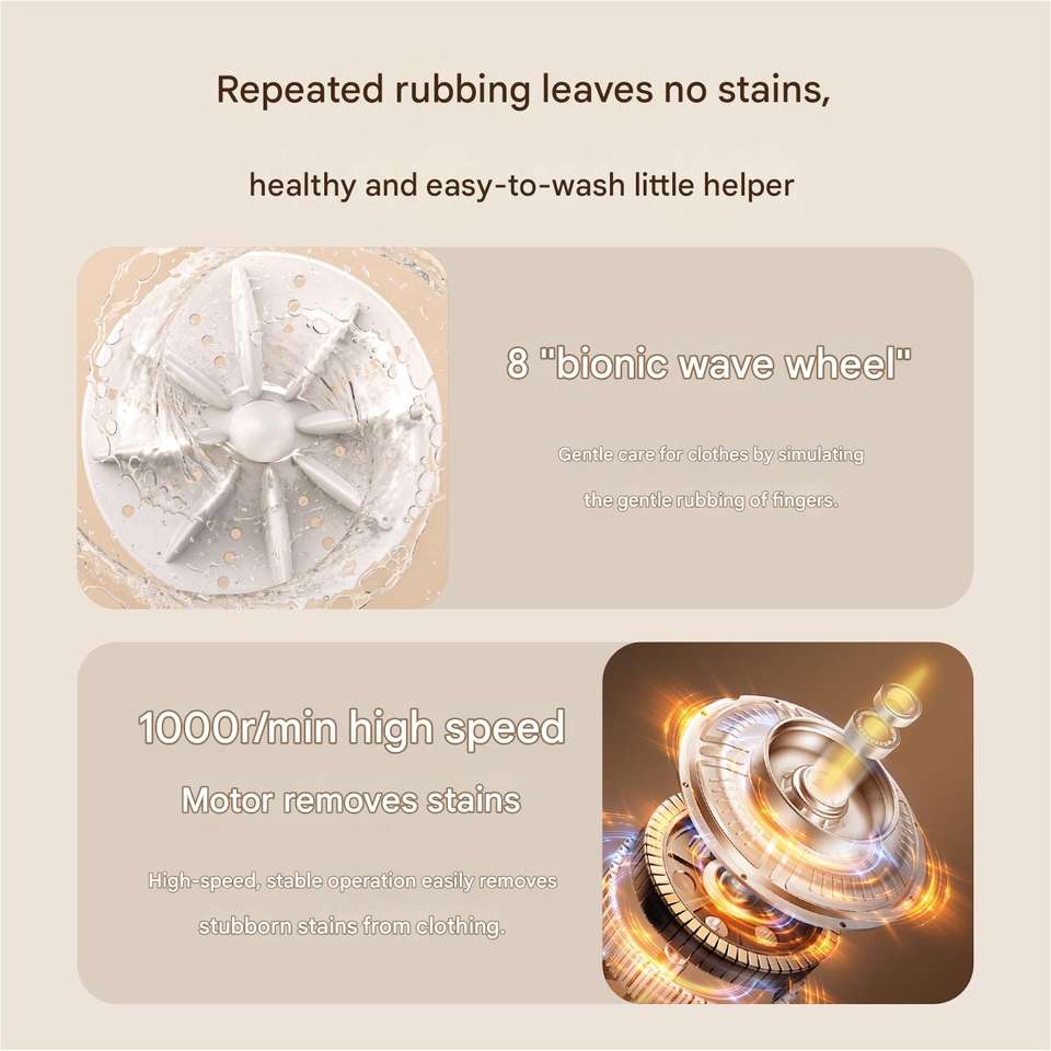 Lave-linge automatique portable tout-en-un, voyage, ménage, vêtements pour bébé, rechargeable USB-C, sous-vêtements, chaussettes, mini-lave-linge