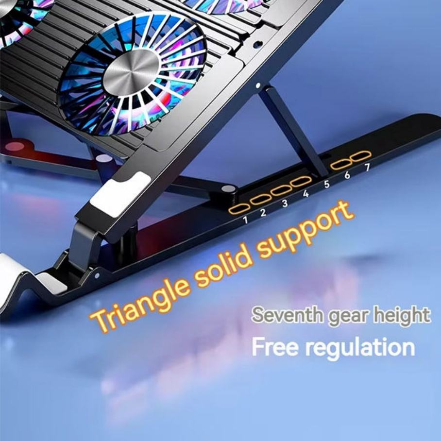 Support de refroidissement pour ordinateur portable en aluminium portable, réglable, base de refroidissement pliable, coussinets de refroidissement pour ordinateur portable de 13 à 17,3 pouces avec 4 ventilateurs