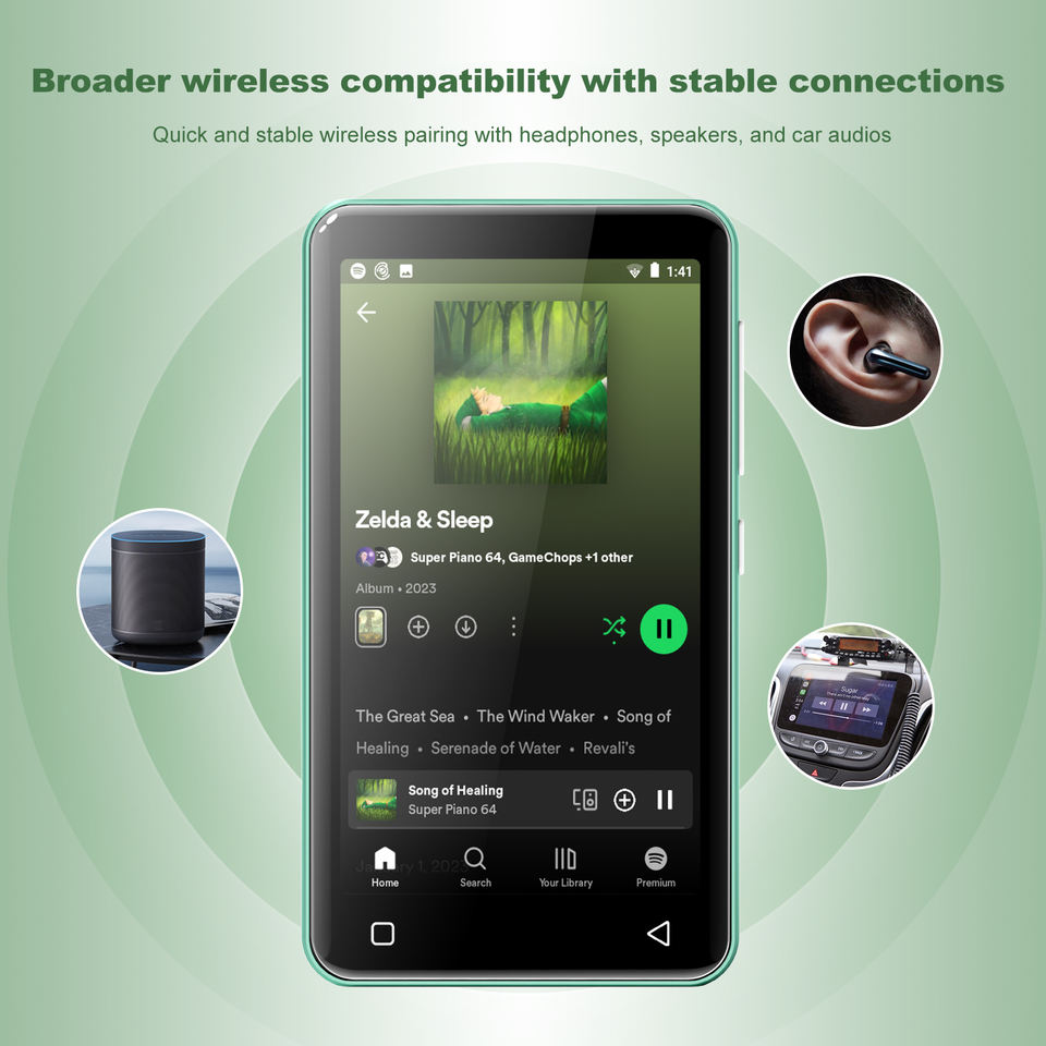Lecteur de musique MP3/MP4 Android portable Haut-parleurs /WiFi/Spotify Kindle E-reader Radio FM Prise en charge WAV Autonomie de 20 heures