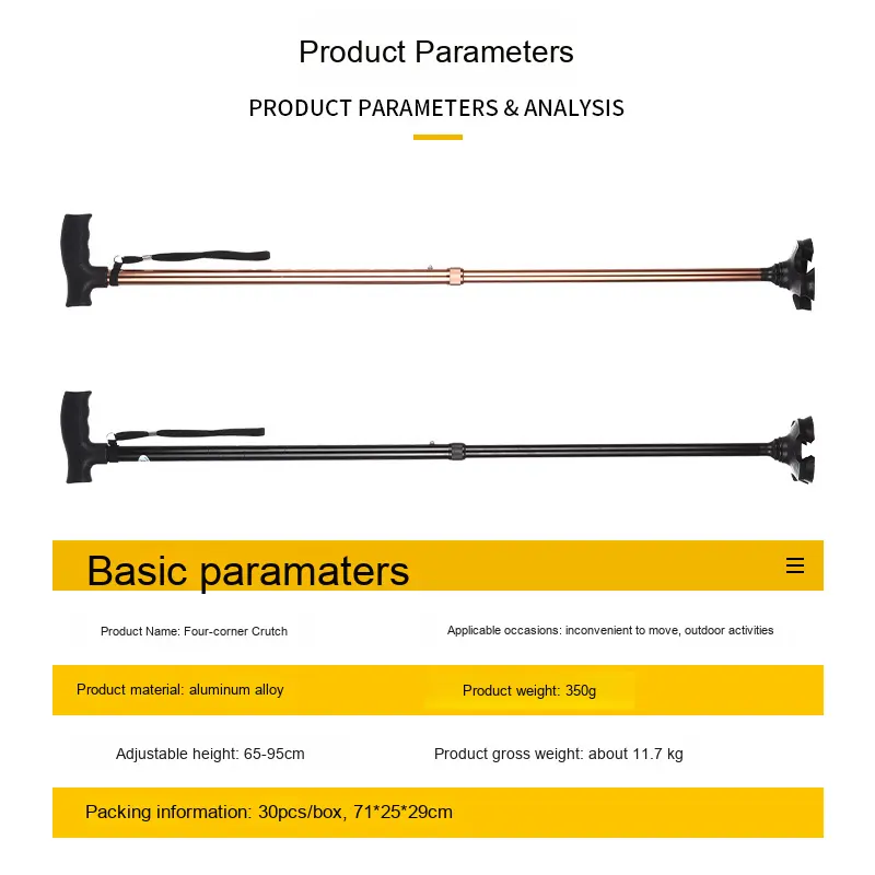 Bâton de marche pliant télescopique extérieur anti-dérapant portable avec poignée incurvée en alliage d'aluminium pour les personnes âgées
