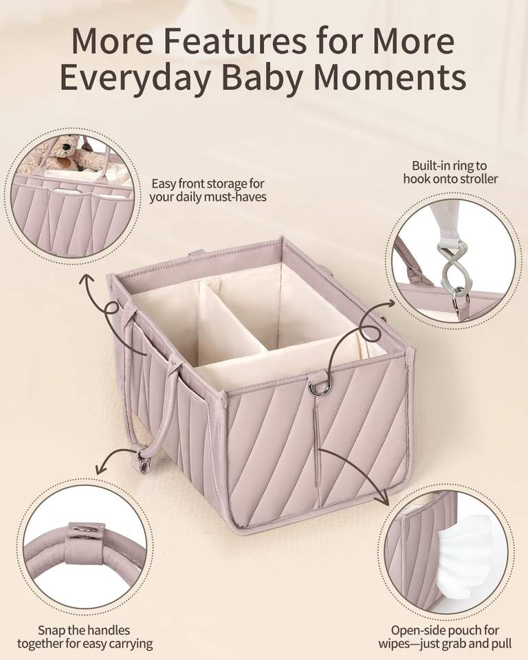 Organisateur de rangement pour couches de bébé portable, panier en tissu doux avec compartiments pour la crèche et la table à langer