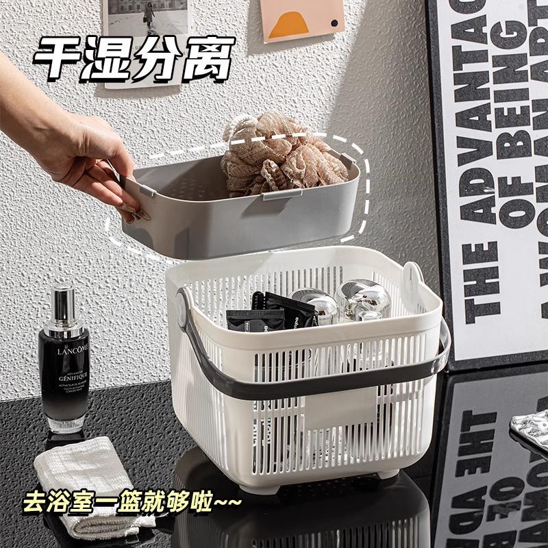 Panier de bain portable rectangulaire 10-20L avec séparation sec/humide pour rangement des articles de toilette de salle de bain