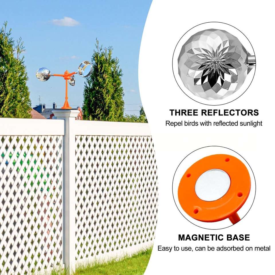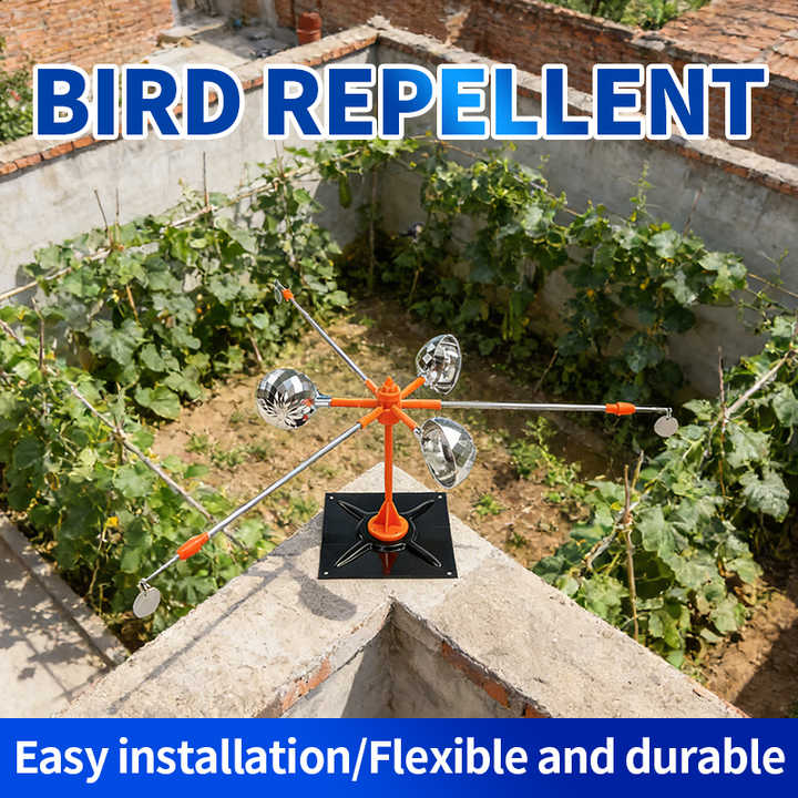 Répulsif d'Oiseaux Portable à Énergie Solaire et Éolienne avec Éoliennes Réfléchissantes pour Jardins, Vergers et Forêts