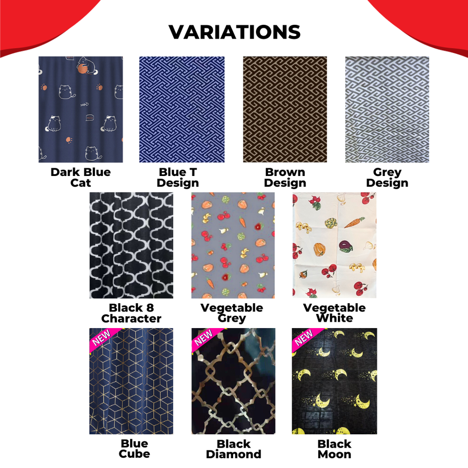 Portable Blackout Design Cabinet Langsir Dapur Corak Kabinet Tirai Cabinet Dapur Kitchen Curtain Langsir Sinki Touch Fastener