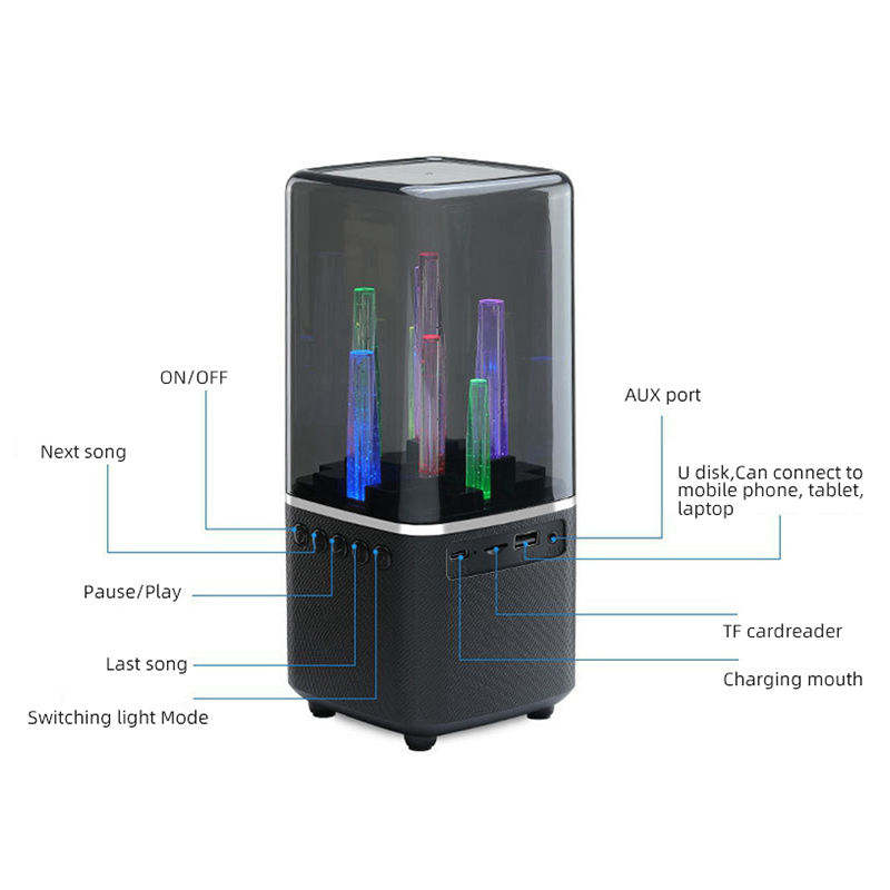 Haut-parleur Bluetooth portable colonne de basse sans fil haut-parleurs vibro de musique extérieure étanches avec lumière fantaisie