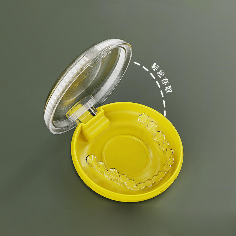 Portable Braces Case Round Yellow Invisible Orthodontic Retainer Storage Box For Teeth Alignment Care