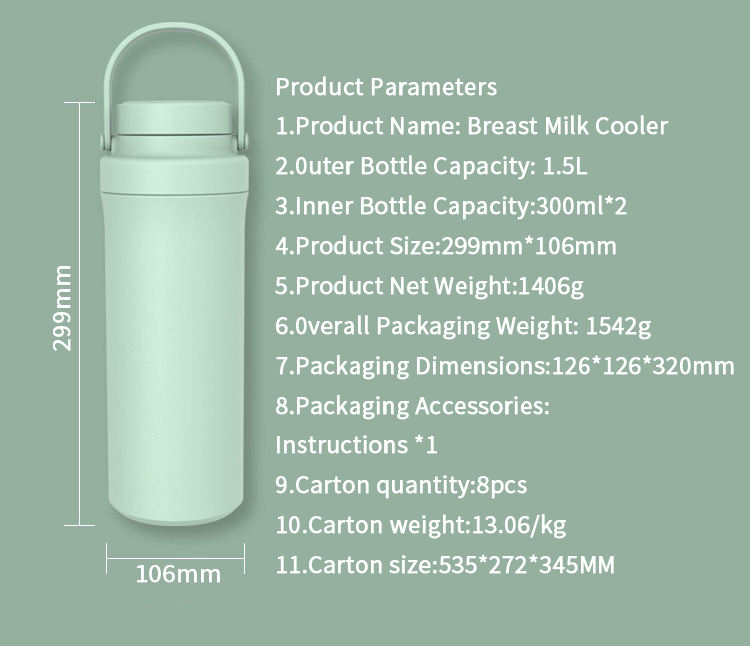 Portable Breast Milk Cooler, Keeps Milk Fresh for 24 Hours, Breastfeeding Essentials with 2pcs Bottle for Breastmilk Storage